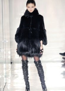 For fur coats on the floor, it is recommended to choose over the knee boots, which will be no less chic than the mink itself.