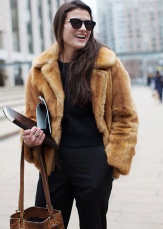 Classic and natural shades of fur, which include beige, the color of walnut and chocolate, next to black things will look boring and muffled. More successful will be the image created from various shades of brown.