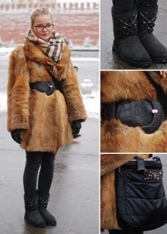 About ugg boots should talk separately. No matter how much you love such shoes and no matter how fashionable a model gathers dust in your wardrobe, waiting for the onset of the season, categorically it is impossible to wear ugg boots under a mink coat. Such shoes should be left for a sports jacket, and not for a noble, expensive mink fur. And, in general, ugg boots are considered shoes for every day and they are not a pair of fur coats.