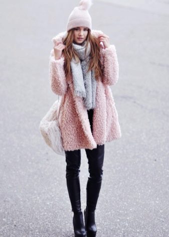 - If earlier everyone tried to choose a solid coat, now designers are specially creating models from small shreds of fur. Under such a fur coat you can wear leather trousers that will be complemented by wedge ankle boots. If you want to stand out from the crowd, you can experiment with a bright shawl, a hat in the shape of a bowler hat.