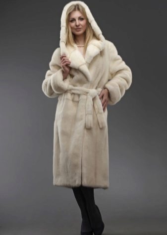 Fur coat - a dressing gown has a straight or slightly flared cut, fasteners for special buttons - hooks and a fur long belt. Some products have no fasteners and are worn by smell, in combination only with a belt.