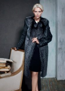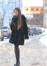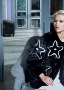 The main feature of Sagitta fur coats is the boldness of the design when combining various textures and color schemes of products. This collection is adorned with a black ScanBlack fur coat of the Chanel model with a hood.