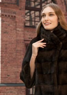 Unique models of mink coats are scanbrown and mahogany. The styles of products from this fur are different - from a fur coat of a transverse cut with a hood or a belt to a short product with a sleeve of three quarters and an interesting print with flowers.