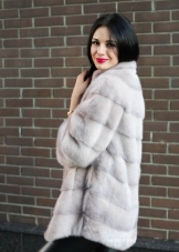 - a la Chanel - a fur coat of medium length without a collar and with a shortened collar. It is worn with a silk scarf and produces an unusual romantic effect.