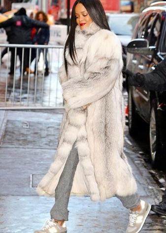 - Light gray fur coat. This white-coated fur coat looks expensive and luxurious, it only produces the effect of snow.