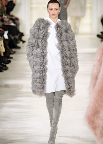 In addition, against the background of the usual black, white, brown, a gray coat will look fresh and new.