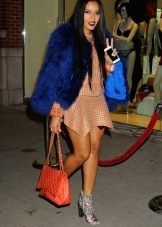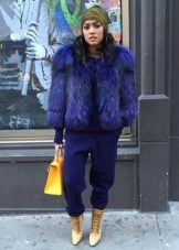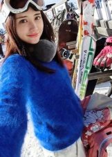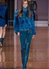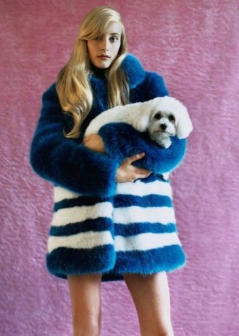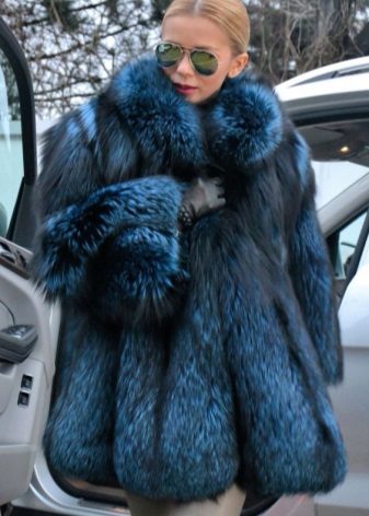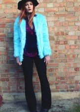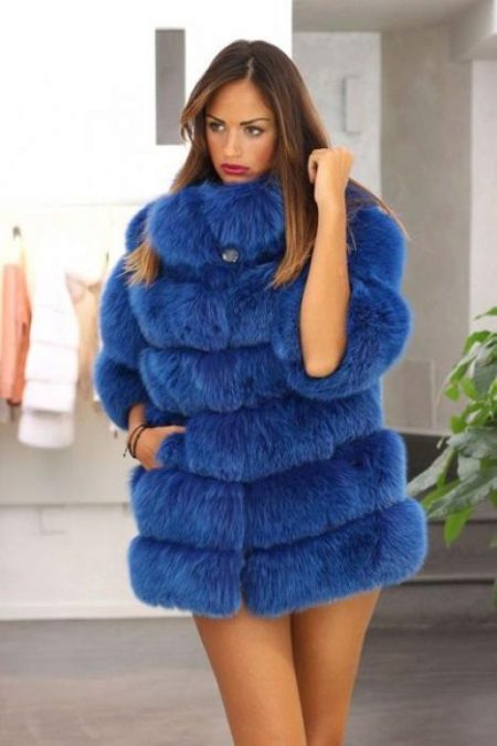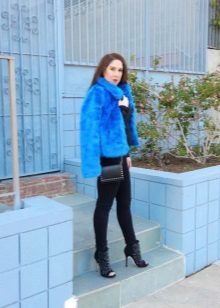 Bright coats of indigo, electrician, turquoise look great. These are cleaner, more active shades that take full care of themselves. By purchasing such a fur coat, you must either tune in to the fact that other items of clothing will not be so bright, or, on the contrary, make up a winter wardrobe from flowers that combine with bright blue: yellow, orange, terracotta or mustard.