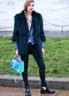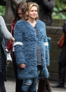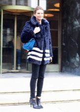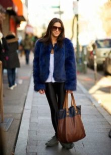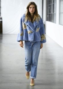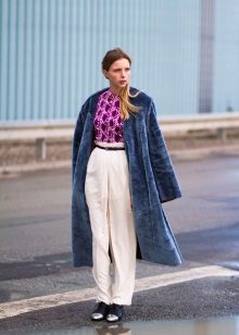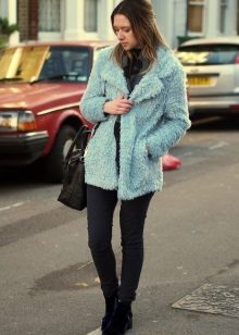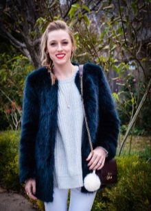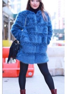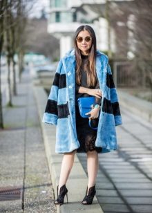 In addition, blue outerwear is perfectly combined with other details of the wardrobe, such as black or gray. Both colored and restrained accessories are suitable for such a fur coat: gloves, bag, hat and scarf. The same goes for shoes.