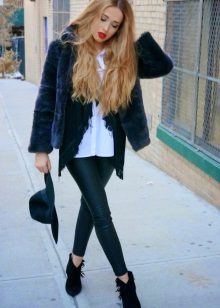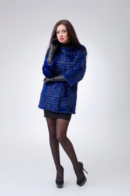 At the height of fashion, blue fur coats with leather accents. The skin can be black or brown, right down to a red or beige hue. Often, such models are decorated with metal - rivets, zippers or buttons.