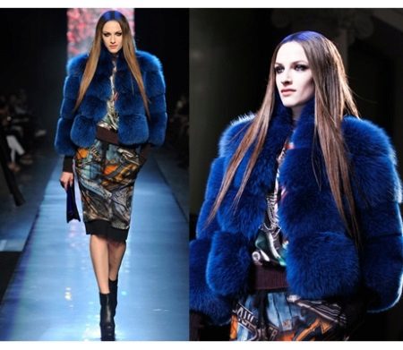 This year, designers presented on fashion catwalks a lot of models of blue-green fur coats. Most often, such fur coats are found in a shorter version - a cut “jacket”, “auto-lady”, “balloon” or “bat”. According to stylists, a bright color looks more advantageous precisely with a short length.