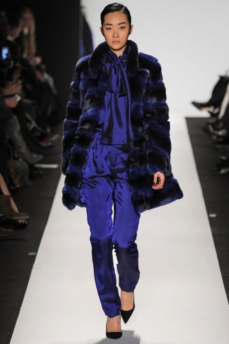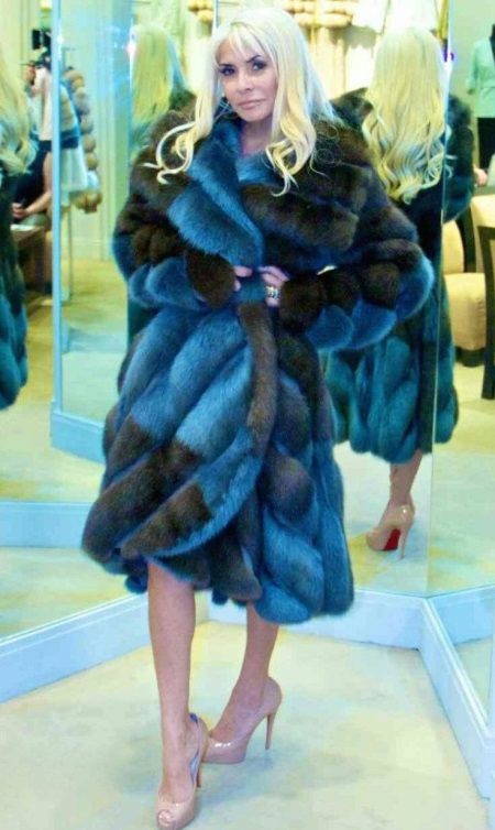 Popular models of A-shaped cut with a hood or fur coats, gowns tied to the belt. Fur coats “to the floor” are most often sewn from completely dark blue fur, on the verge of black. Only in bright sunlight, the fur coat flashes like a precious sapphire.