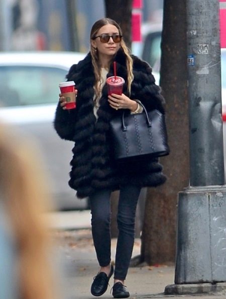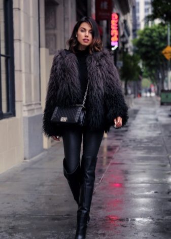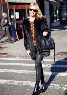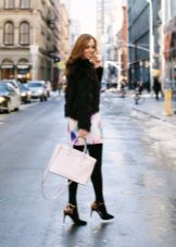 The most safe in terms of image consistency and the inability to seem tasteless can be safely called total black look: a black bag, gloves and boots combined with a black fur coat. In this case, you need to pay attention to whether the image turns out to be too gloomy - otherwise its owner risks visually adding a few extra years.