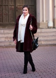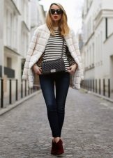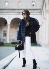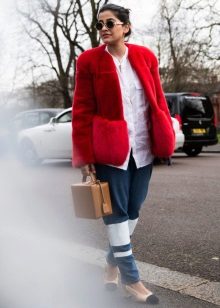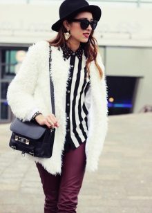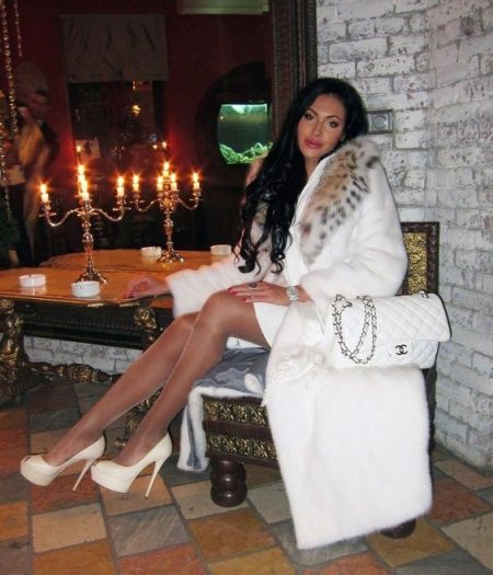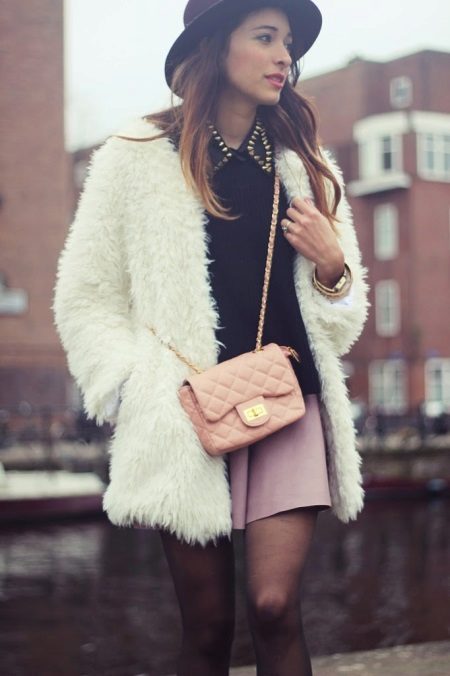 Therefore, a white fur coat complete with a white bag made of leather or expensive fur will emphasize the sophistication and sense of taste of their owner. At the same time, the main thing is not to forget that, unlike total black, the image can not consist of strictly white things - to add contrast easily with a hat or a hat of bright colors and the same shoes.