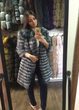 In some fur coats, it is possible to shorten the elements not by one “division”, but by several at once - for example, sleeves by three quarters can turn into a cut to the elbow, and can be dismantled completely, transforming the fur coat into a fur vest.