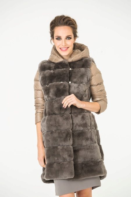 However, the cost of a transformer coat can be much lower - because the features of the concept of such a designer allow the designers' fantasies the most daring and unusual experiments. Recently, so-called down-fur coats are gaining more and more popularity, in which the central part of the product is sewn from exquisite fur, and the detachable sleeves (and sometimes the hem) are made from Bologna or textile materials with down filling.