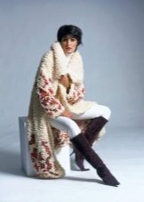 - knitted from wool, an elegantly decorated peach-colored swinger with a miniskirt and ankle boots will help to create a very romantic look.
