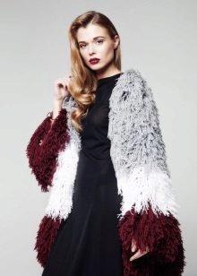 - a fur coat-cape with a very long pile of three-colored yarn will emphasize the fragility of the figure;
