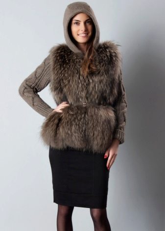 - a funny version of a fur coat with knitted sleeves and a hood will add lightness to the serious image of an office lady;