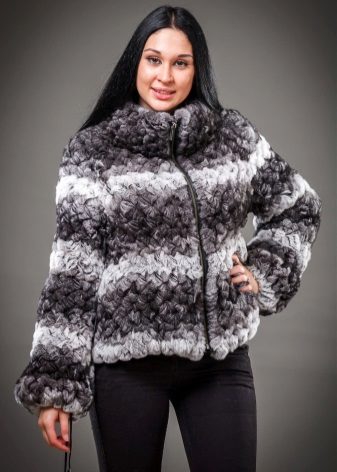 - the style and elegance of a short jacket from a two-color knitted mink will not leave anyone indifferent, perhaps;
