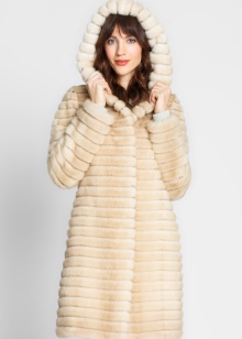 Younger fashionistas prefer a french jacket, the length of which coincides with a classic fur coat, and the main difference is in the straight style and transverse sewing of fur rags. Such a fur coat looks simply luxurious.