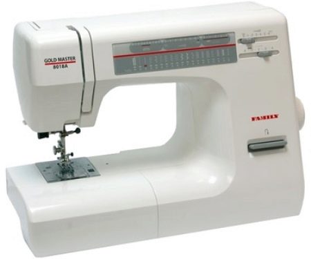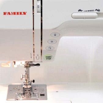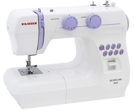 The electromechanical sewing machine Family has 10 modes of operation. In its appearance there is nothing superfluous, there are all those functions that are inherent in machines of this class.