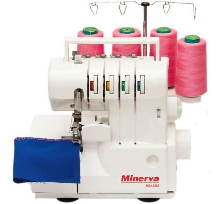 The last overlock worth mentioning is Minerva M940DS. This model can make 2-, 3- and 4-thread and role seams. We also note the presence of differential feed and simple threading. The speed of this model is 1200 stitches per minute.