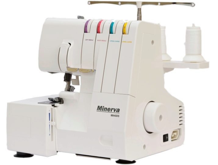 Minerva's next overlock model has an index M840ds. She can make 2-, 3- and 4-thread stitches. In addition, using this model, you can also make a role-type seam. There is a differential feed function, and the speed of the Minerva M840DS is 1250 stitches in 1 minute.
