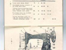 - In preparation for the start of sewing, it is necessary to combine the upper and lower threads, and then stretch them to the side opposite from the seamstress. Material is laid under the foot on the work platform, then the foot is lowered, and when the flywheel shaft rotates, the needle pierces the fabric.