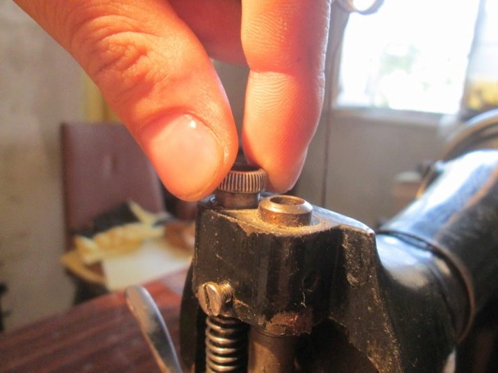 In the case of the upper thread, it is adjusted using the screw on the spring device. For work be sure to lower the foot to the surface of the work platform. After that, you can increase the tension with a screwdriver by turning the nut to the right or loosen it by acting in the opposite direction.