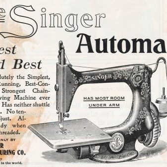 At the end of the 19th century, the workshop of the Russian merchant Popov began the production of sewing units under the Singer brand. The features of these sewing devices include shuttle movement along the typewriter. The thread was pulled primitively due to the square cross section of the needle holder. The thread passed through the holes in the shuttle; its tension was poorly regulated.