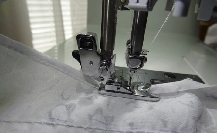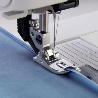 Such a foot allows you to create a neat seam along the edge of thin and delicate fabrics, while bending them inward.