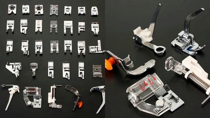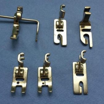 Feet for sewing machines are clamping elements with a removable structure, necessary for fixing the material in one or more layers on the surface of the bed. Their application allows you to perform various operations: to make edging, to sew an oblique edging and buttons, to sew in a zipper, to hem the edges. Feet for decorative work facilitate decorating the material with beads, cords, braid, allow embroidery, appliqués. There are special clamping elements for leather, and fur, jeans, quilting and patchwork.
