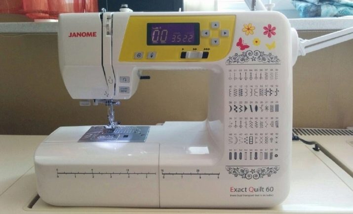 - Janome Exact Quilt 60. One of the best cars in its class. Includes a liquid crystal information display. Suitable not only for sewing on straight and overlock finishes, but also for embroidery, patchwork, quilting. A good compromise for seamstresses with average experience.