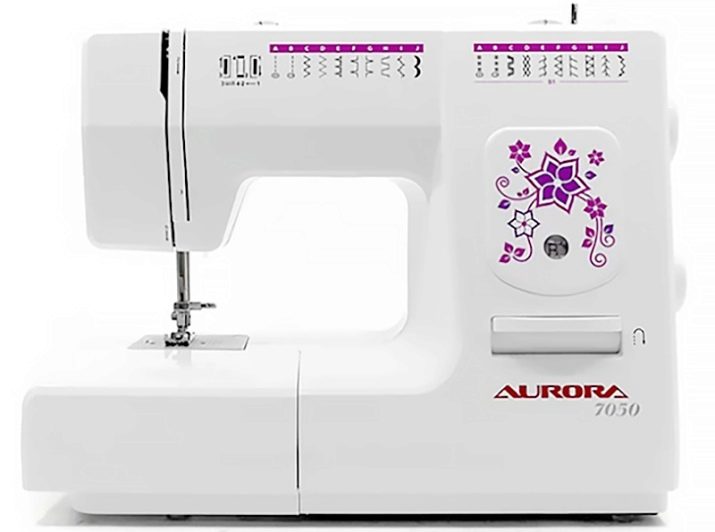 - Aurora 7050. A reliable electromechanical machine supporting the implementation of an overlock seam. Suitable for working with materials of different types and densities. The best choice if you need to get a universal tool for home sewing.
