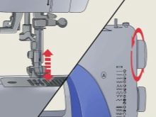 Next, you need to return the device lever to its original position. This will start the process of threading the thread into the needle. It turns out a turn, for which it is necessary to pull the thread.