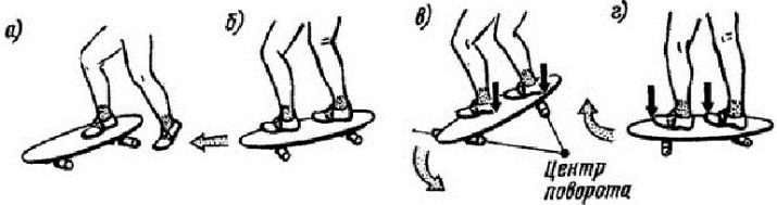 If you just stand there, the skate won't go anywhere. But if you put your toes on the edge, then the rollers from this side will come closer, and under the heels, on the contrary, will move apart in different directions. The board at the same time leans forward. When pressing with the heels, everything will turn out the other way round - the board will lean back.