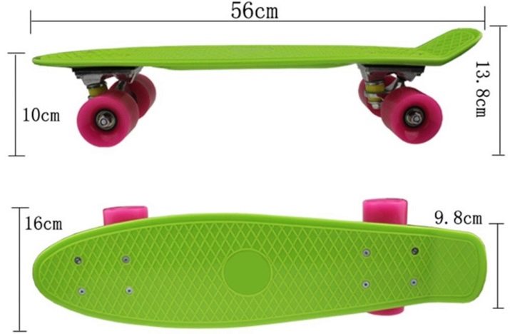 Penny boards are made of very durable plastic, and each manufacturer has its own material. These boards are even smaller - their length is not more than 17 inches (about 43 cm), and their width is 5 inches (less than 13 cm). They are designed for loads of up to 50 kg, but their large wheels smooth out asphalt irregularities.
