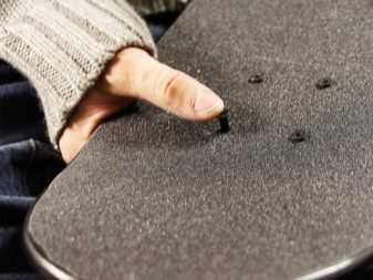 - Place a new skin along the entire length of the board and glue it, smoothing and moving from the center to the edges. This technology will prevent air from entering between the deck and the emery. To reduce friction, some skaters lay a sheet of paper on a rough surface and smooth it.