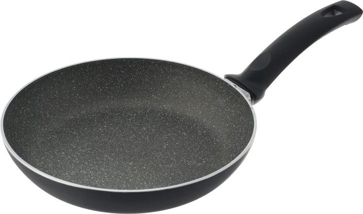 - Cortina Granitium. The pan has a 28-centimeter diameter, which is quite enough for comfortable cooking. The wall thickness is almost 4 millimeters, due to which there is a quick heating of the dishes. It has the color of stone chips with a comfortable silicone handle.