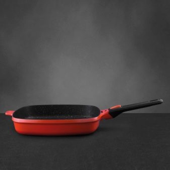 Gem frying pan (24 cm) is made of high-strength aluminum with a protective coating. The shape here is square, the volume of the dishes is 2.4 liters. Suitable for cooking on induction hobs, as well as on an open fire. Thanks to the “striped” bottom, meat and fish are obtained with all the familiar marks. A similar option for grill utensils is the 2.6-liter Scala Ferno Green series.