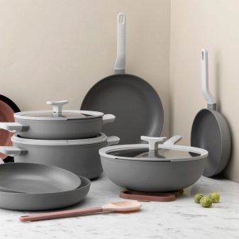 Also in the BergHOFF collection there are models from stainless steel, cast iron, ceramics, phosphorus, as well as products with non-stick coating.