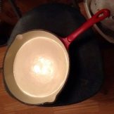 For cooking hot sauces, you should definitely have a small cast iron in the kitchen pan-frying pan. The dishes are distinguished by thick walls (about 7 mm) and a spout in the design. The weight of such a pan, despite its modest size, is 1 kilogram. During cooking, the sauce does not burn due to the fact that the heat is distributed evenly.