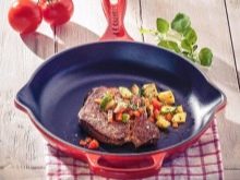 Non-stick coating is now successfully applied to cast iron products. Although these pans have many advantages, they are very demanding on cutlery that come in contact with their surface. Grease and burnt foods can be easily cleaned by simply pouring boiling water over the container. Smells of dishes are not absorbed.