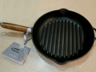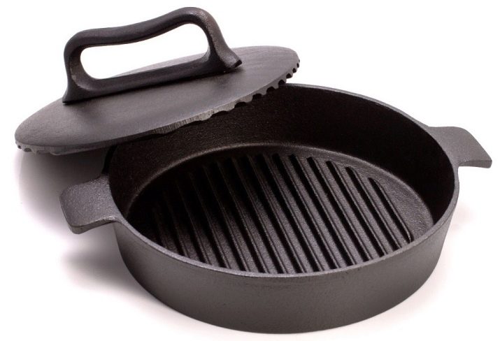 It should be noted that cast iron is suitable for use in induction furnaces, since it is a wonderful ferromagnet. Induction bottom is one of the modern developments of manufacturers. In pans with a corrugated bottom, you can not use oil at all. Such dishes fit perfectly in the dishwasher. The only drawback is the metal handle, which is easily burned, and the lack of a cover.
