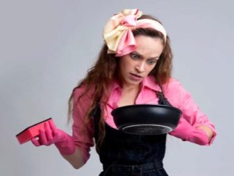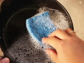 It is enough to immerse the dishes for some time in hot water and apply a soap solution. The use of strong chemicals, and especially with large abrasive particles, is strictly prohibited. A simple sponge will perfectly remove the remnants of softened food. Sometimes they take for cleaning salt or soda.
