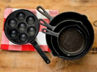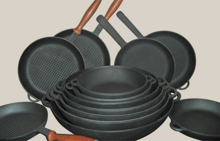 Cast iron pans are delivered to the market in a large assortment. There are cast deep and flat, used exclusively for frying pancakes. In such dishes, the dish turns out to be amazingly tasty and is well baked without burning.