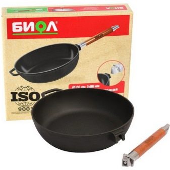 The variety of such kitchen utensils cannot but please the hostess. If a few decades ago a cast-iron frying pan was presented in one version, today there are models with non-stick coating and with removable handles. Modern technologies are constantly evolving, each manufacturer seeks to take into account the desires of the consumer.