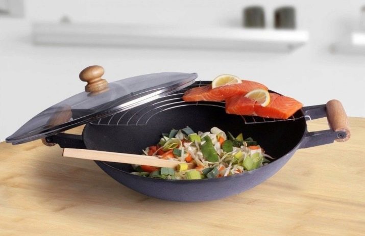 - Baumalu. It produces good woks with a diameter of 360 mm. For ease of use, the design provides two handles. Walls with a thickness of 8 mm are an ideal solution for baking and stewing meat. Models come with a grill, it is used for cooking steamed.