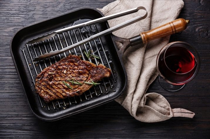 The steak pan should have high walls. This will not only protect against hot sprays, but also contribute to the rapid formation of high temperatures. After all, heat comes from the walls, which helps to speed up the cooking process.