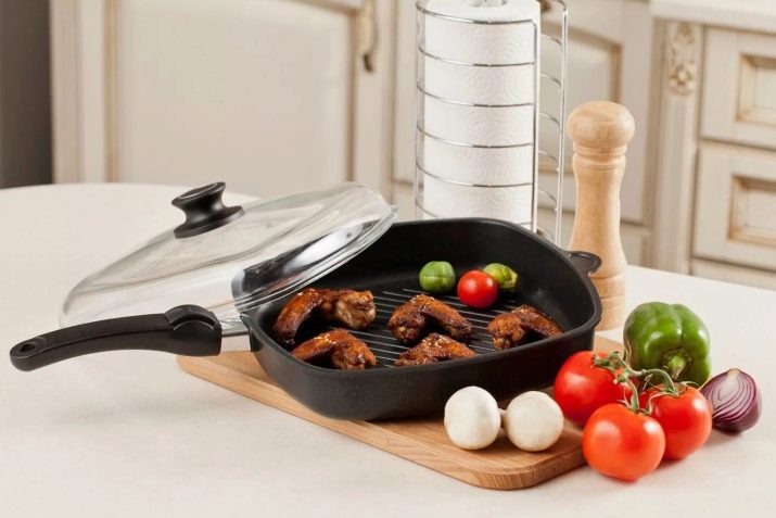 If the dishes have a corrugated bottom, it is called a grill. The presence of this feature allows fat to accumulate between the recesses at the bottom of the pan. Therefore, the products that are prepared do not float in fat.